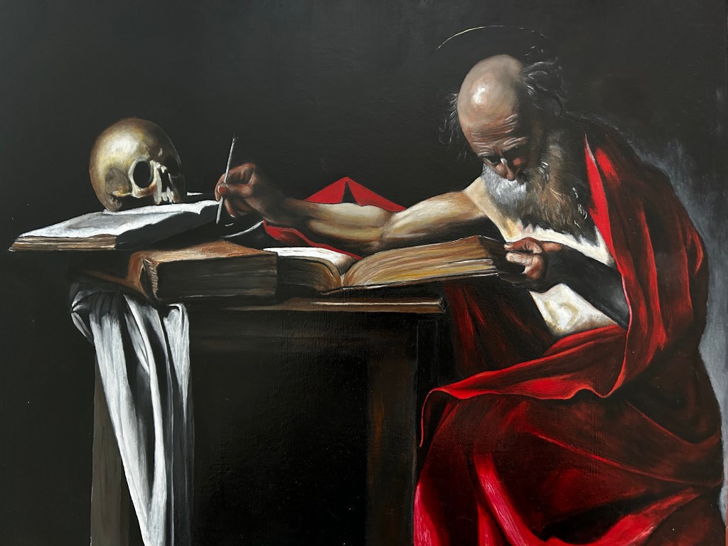 copie d après le saint Jerôme écrivant de Caravage .huile sur toile